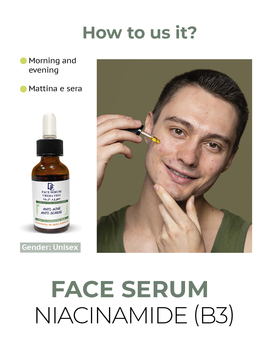 - Why use it: acne, acne scars, accessive production of sebum.